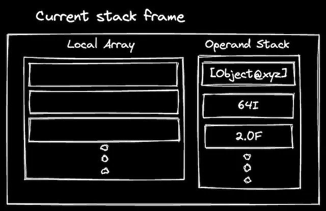 Every method has a small space allocated to it within the Java call stack called a frame. Frames store local variables, the operand stack for the method and also the address of the constant pool of the method’s containing class.